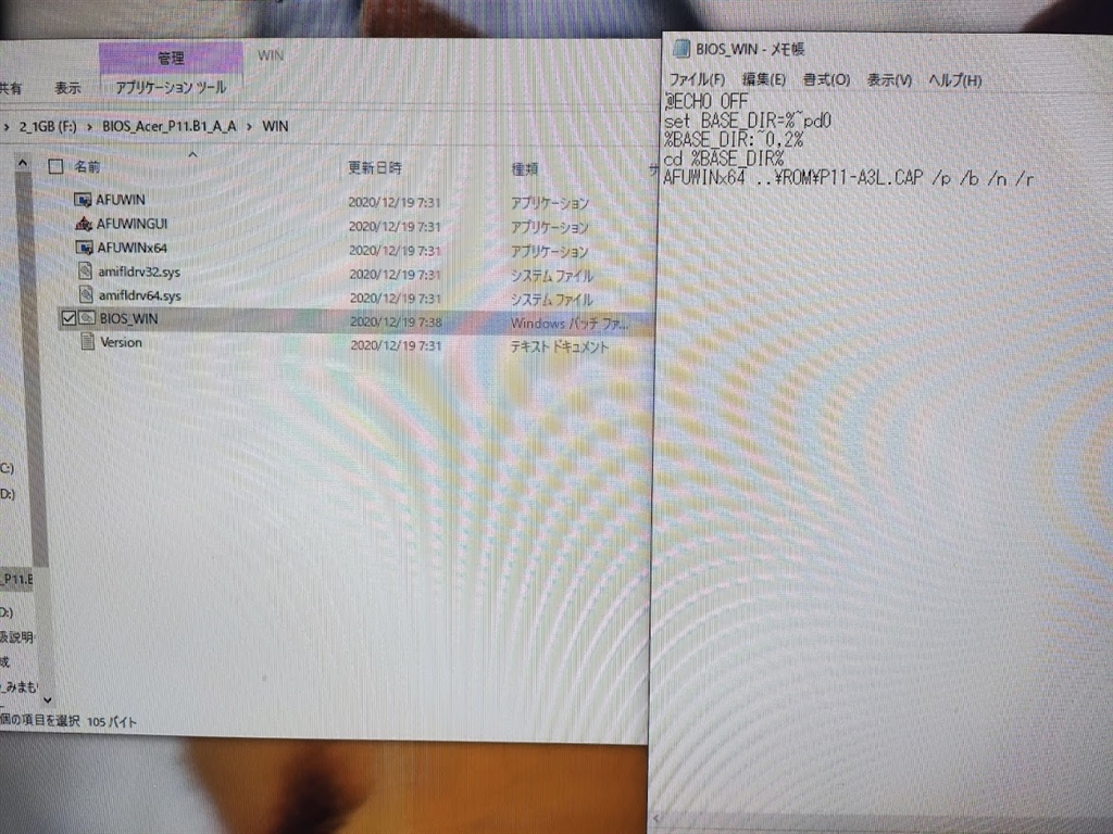 BIOS WINをWindows PE上で実行したときの写真