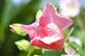 見頃になった芙蓉。朝は白く昼、夕方に向かうにつれ