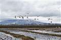 ハクチョウ達の食事を邪魔しないよう、水の入ってない排水路から、しゃがんで近づきます
