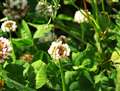 一枚目の花の名前は一般的に皆さんご存知の三つ葉(通常この葉の中から四枚葉を探し四つ葉のクローバーを見つけたと女の子は喜びます)です、正式にはイモカタバミの花です。