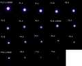 このレンズの場合、およそF1.8までは収差が残っている感じで少し大きめの点になり、F2.0以降は