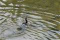 早朝、散歩の途中、川鵜の漁に出会いました、^_^;。小魚(ハゼ)を飲み込む瞬間を撮りたかったのですが、カメラに不慣れのせいもあり、残念でした、>_<;。