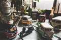 アシスタント君に黒傘を指して貰う