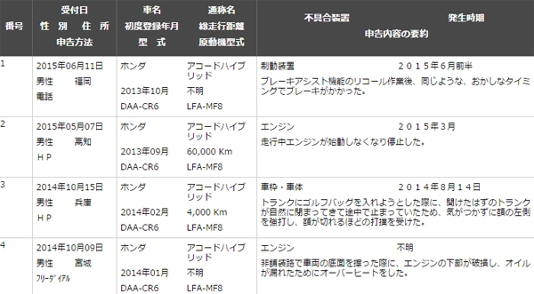 国土交通省の不具合情報
