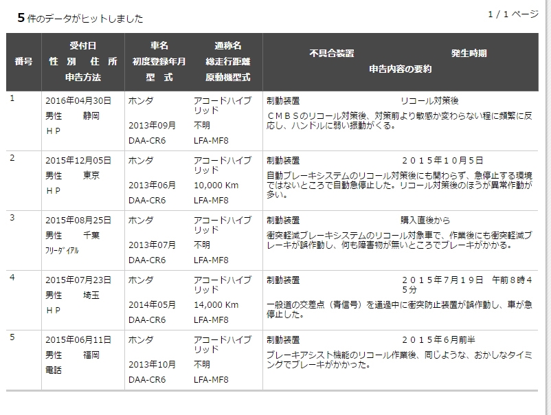 「CMBSの不具合情報(国土交通省HP)に5件目が登録されました!」 ホンダ アコード 2013年モデル asctさんのクチコミ掲示板画像1/1