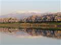 水鏡に映る蔵王と逆さ桜並木を写したのでござる