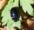 ハムシの背中にピントが合っていない、ピンボケだと思います。