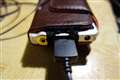上記の写真のままだと充電できないのでもう少し穴を広げてありますが。