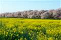 4枚目は、四万十川(四万十市)の河口に群生する菜の花です。2km位に渡って一面菜の花で埋め尽くされて