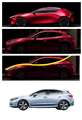 画像は上から、(1)アクセラコンセプト、(2)現行アクセラ、(3)しなり強調、(4)インプレッサ スポーツを参考として並べてみましまた。こうして並べてみると現行アクセラのプロポーションがいかに美しいか感心させられます。