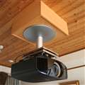 入荷後、テーブルに仮置きして4K映像を楽しんでいましたが、取り付け金具も完成し、12月10日には配線変更工事も終了、QUOLIA 004のサスペンションユニットに補助金具を介して、天吊りにすることができました。