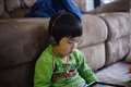 2枚目、小型TVを見る孫(レンズのみ最短1m) [F2] [α7II+Summicron 50mm F2[L](沈)]