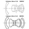 M-Rokkor 28mm F2.8 、G-Biogon 28mm F2.8 の構成図 |