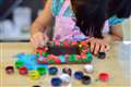 大体70〜80cm角程度のテーブルの上にある紙粘土を、