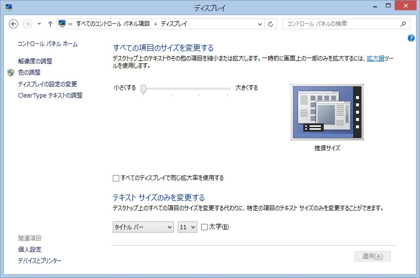 『テキスト拡大率の変更』マイクロソフト Surface Pro 2 256GB 7NX-00001 クアドトリチケールさんのクチコミ掲示板画像1/1
