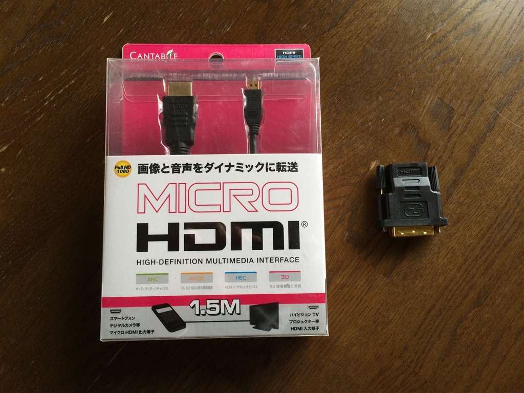 microHDMI HDMI変換コードとDVI-D HDMI変換です