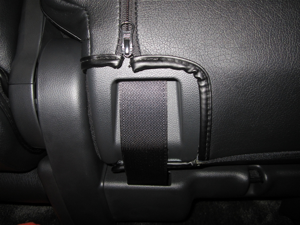 2列目運転席側シートベルトカバー下部ジッパー下した状態