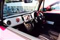 ステアリングパネルは楽天で見つけた、ピンクのもの。クーペ風エンブレムも購入予定。