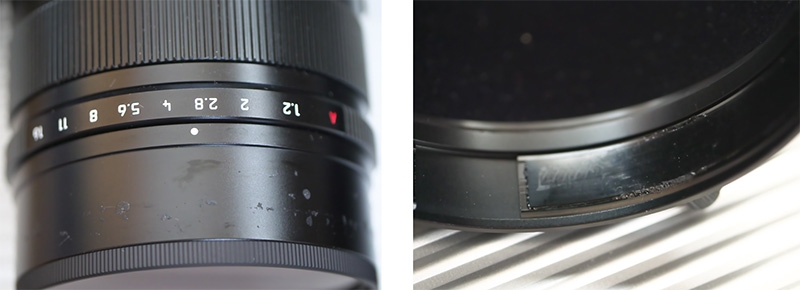 左がレンズに付いたネバネバ。右はフード内側。