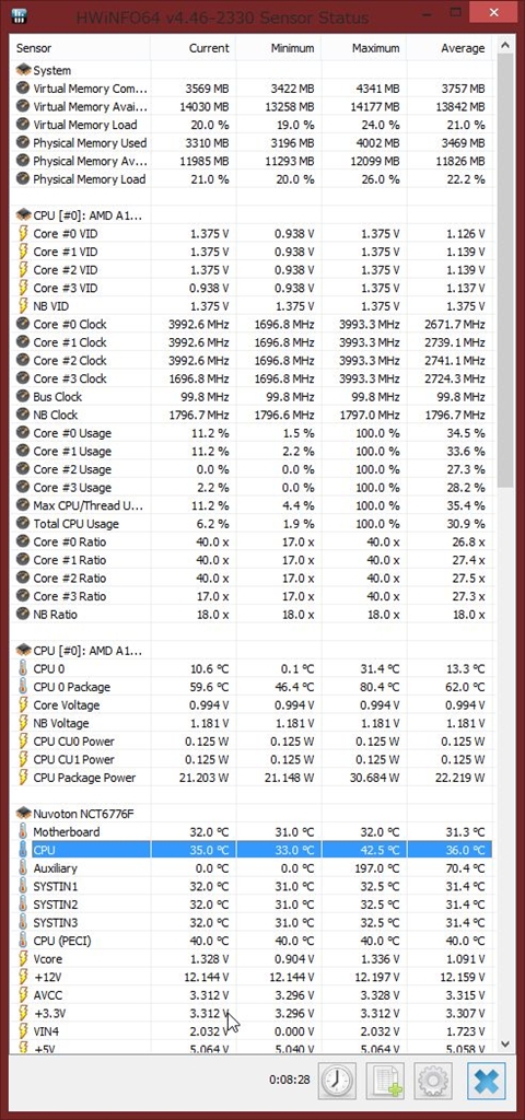 『運用時参考にすべきであろう温度(反転してる欄)』AMD A10-7850K BOX 軽部さんのクチコミ掲示板画像1/1