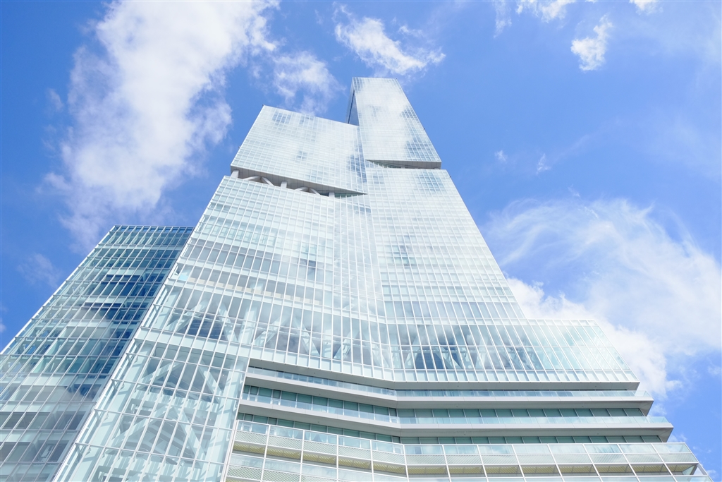 建物に映り込む雲を撮ろうとしましたが露出失敗
