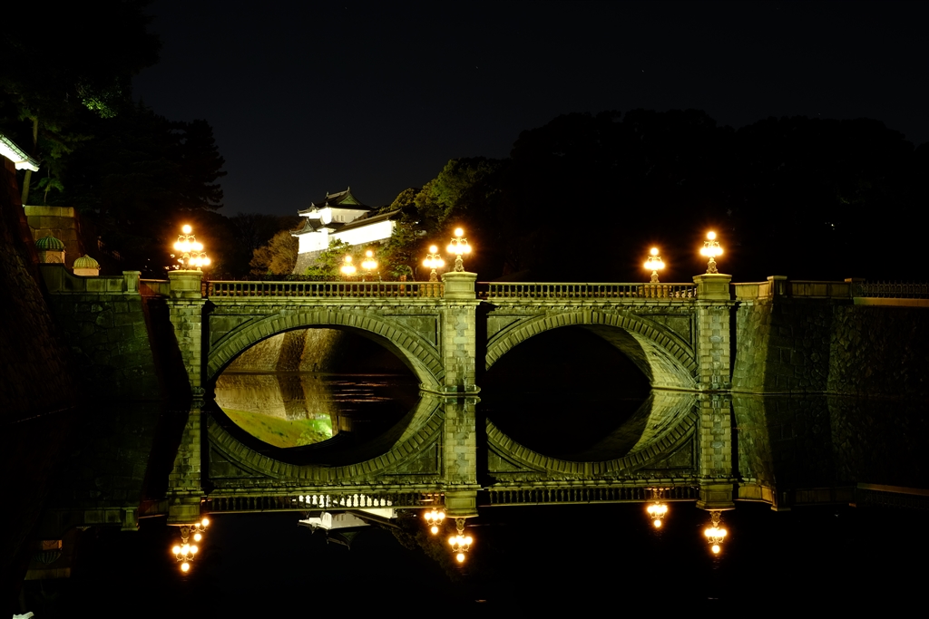 皇居二重橋。奇跡の無風状態でした。