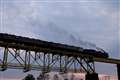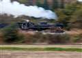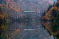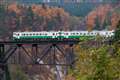いいですねえ・・・稲刈りの済んだ山里を走るSL・・・・