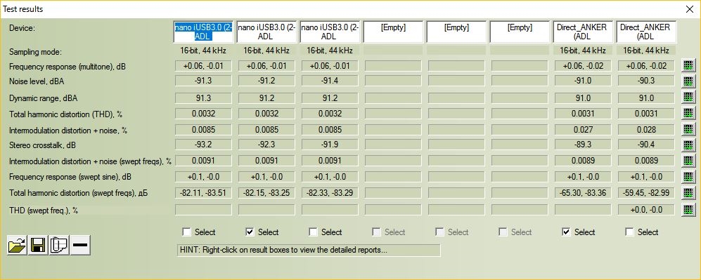 nano iUSB3.0介してのRMAA All結果