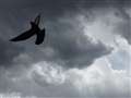 夕方でしかも曇って薄暗い。トビが何羽かのカラスから追われて、攻撃されていたようだ。トビは羽がボロボロ。