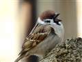 雀の毛がきれいに写っていますね。フワフワ。解像度良いですね。