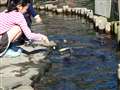 川?池?の水と鯉の組合せがキレイですねー。