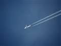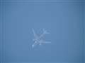 1610万画素(有効画素)のAPS-Cなので、当然条件は違いますが、画像の飛行機雲の先端をズームしていくと、見えるでしょうか? 飛行機の尾翼の航空会社のマークが。