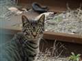普通に撮ると、手前の枝や葉に合焦してしまいますが、猫に合わせてくれます。 |