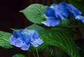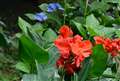 【撮影の場面】1枚目のような雨の降る暗い木陰で、目には鮮やかに映るカンナの花の奥にあるアジサイのある風景。アジサイまでの距離 目測約10m以内
