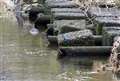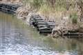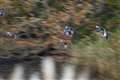 試写 2 暗い川面の対岸にオシドリの大群 露出オーバーを後付けで補正 |