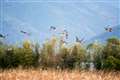 試写18 連続撮影 日の出の後 逆光環境で飛び立つカモを追う |
