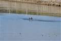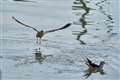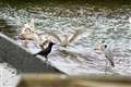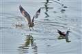 ミサゴは幾度も上空を飛び交うし、時折水に飛び込むが、遙か彼方で80−200mmではトリミングしても届かない。