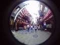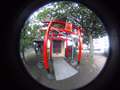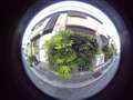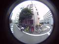 結構気に入っているのが,上に向けて周囲の全周180°を狙う構図です。ビル街の路地とか,神社の境内で頭の上にも木々の葉っぱが覆っているような構図が絵になるように感じます。
