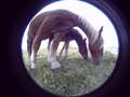 2枚目:尻屋崎の放牧馬…いわゆる寒立馬ですが、非常に大人しいというか人間が居ても我関せずという状態で黙々と草を食べているのでこれだけ近寄っても(というか馬が逆に近寄って来ている状態です)大丈夫なので、こんな写真を撮ってみました。少し前に流行った犬の魚眼写真のようなものですが、馬で撮るというのはなかなかないと思います(笑)。