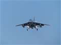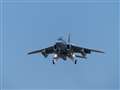 着陸態勢をとりながら高速で近付いて来るT-4に