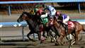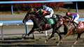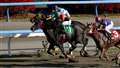 第4コーナーを回り、ゴール前の直線で3頭の競走馬が