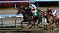 まるで飛ぶように全力疾走している競走馬の