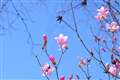 オカメサクラだそうです。カンヒザクラとマメサクラを掛け合わせたもののようです。