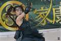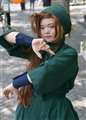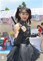この「くのいち」のお嬢さん、演技中は鋭い目つきなんですが、