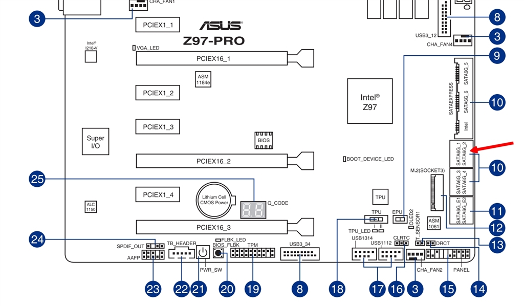 矢印のポートに