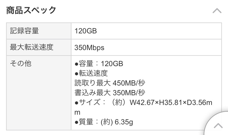 『メーカー公表スペック』Sandisk SDCFSP-120G-J35 [120GB] ぶんぶんっださんのクチコミ掲示板画像3/3