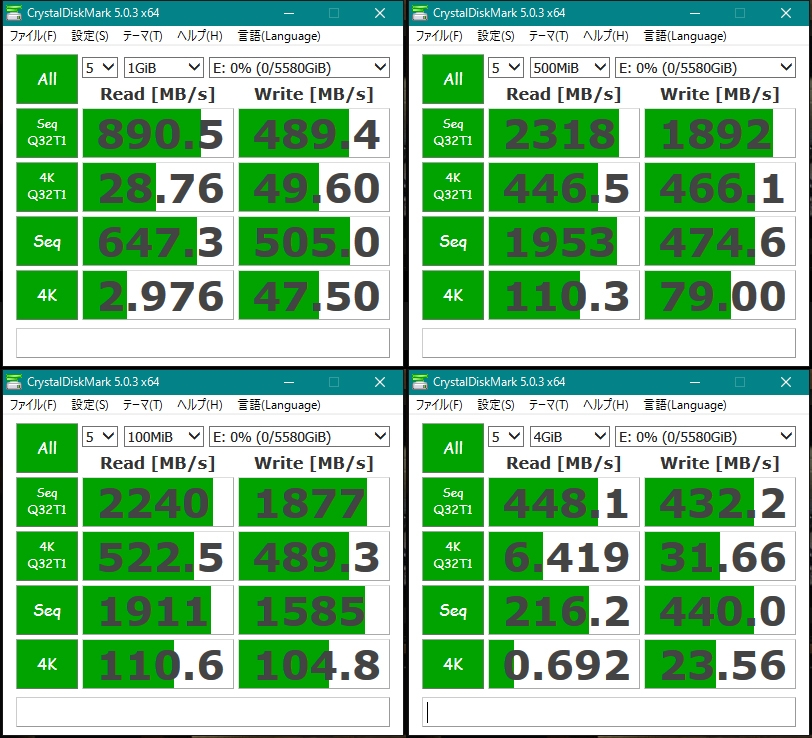 テスト1 ストライプサイズ64KB