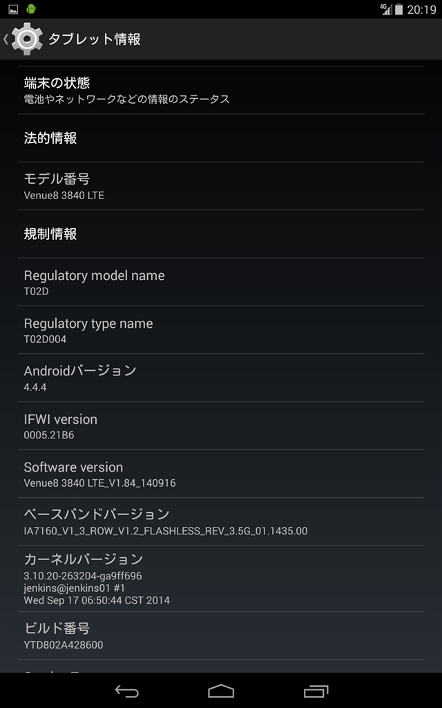 Venue 8 Android 4.4・LTE
