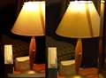 スタンドの笠と時計上の立体的な文字を見た感じでは解像度はCanonが良いと感じました。