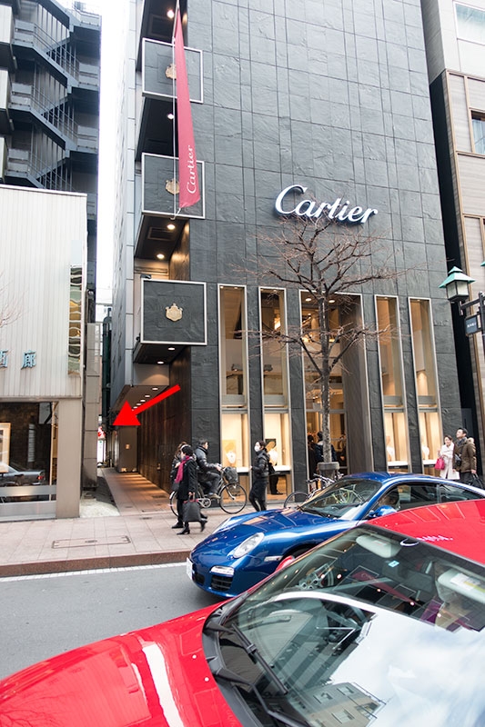 マツキヨ曲がってカルティエの脇に…